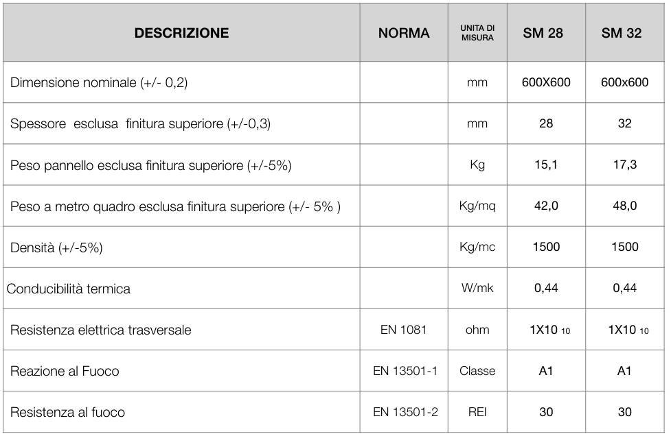 Descrizione : Pannello in Solfato di Calcio 28 o 32 mm mono strato ad alta densità, costituito da gesso e fibre organiche di cellulosa.