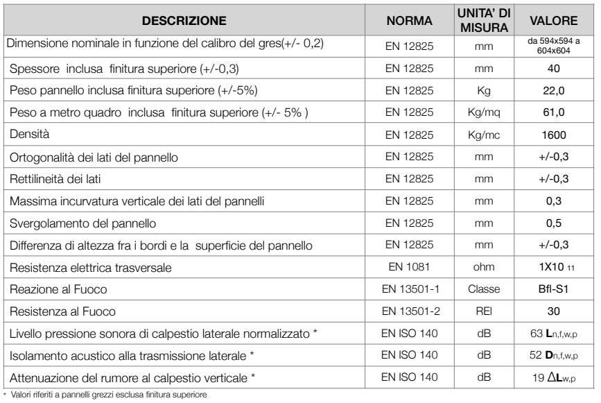 Descrizione: Pannello in Solfato di Calcio rivitalizzati monostrato ad alta densita’ ,1600 Kg/mc, spessore 30 mm, costituito da gesso e fibre organiche di cellulosa, bordatura perimetrale in ABS.
