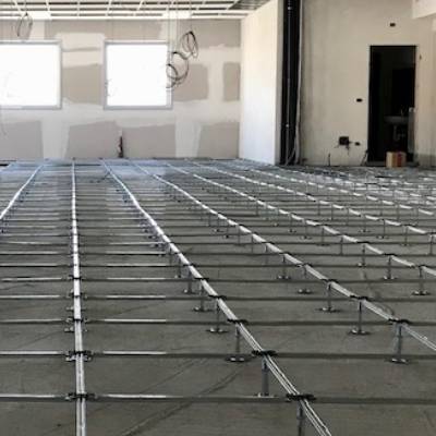 Dopo aver verificato quanto sopra, è possibile impostare il progetto di posa e la trama della struttura portante dei pannelli. Prima di procedere è comunque indispensabile rilevare i dislivelli del solaio, in quanto i supporti standard hanno una regolazione media in altezza di 30 mm, ma spesso i solai hanno dislivelli maggiori. Inoltre, dopo aver asportato la polvere dalla soletta, è consigliabile un trattamento antipolvere da eseguirsi con vernice inalterabile a base poliuretanica o epossidica. Questo trattamento è essenziale nel caso in cui il plenum sottopavimento sia utilizzato come canale dell’aria condizionata.